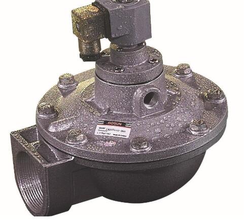工作原理:直角電磁脈沖閥由電磁先導頭、膜片和閥體組成。膜片后腔面積大于前腔面積,壓力力大,使膜片處于關閉位置。電子控制器輸入電信號,使電磁先導頭拉入動柱,打開卸料孔。隔膜后腔中的壓力氣體被迅速排出。隔膜前腔中的壓力氣體抬高隔膜,打開通道,脈沖閥執行噴射。直角電磁脈沖閥的電脈沖信號消失,春天電磁飛行員的頭立即重置列移動到關閉卸載孔,氣體壓力在腔的隔膜和彈簧力使隔膜關閉通道,和閥停止吹。當先導頭動柱提升氣體壓力卸載時,隔膜上的孔板起到了阻尼氣流的作用。當卸載孔關閉時,壓力氣體迅速填入后腔,使膜片關閉通道停止。噴射。